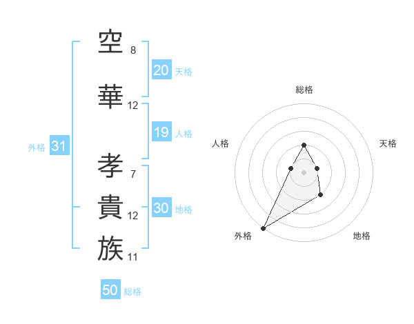 空華 孝貴族さんの総格は50画の2点!