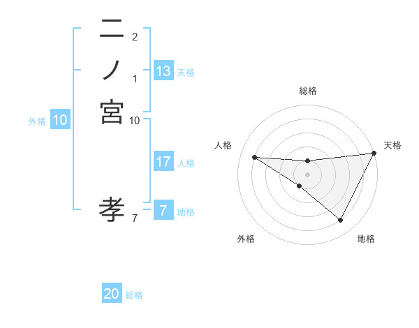二ノ宮 孝さんを姓名の画数から五運を鑑定