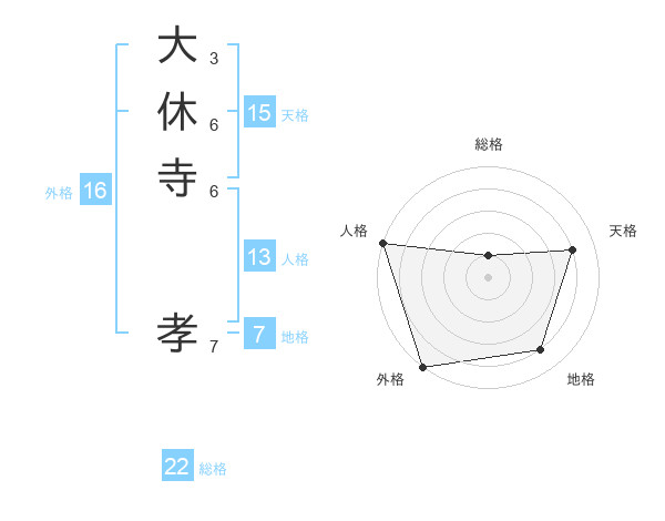 大休寺 孝さんを姓名の画数から五運を鑑定
