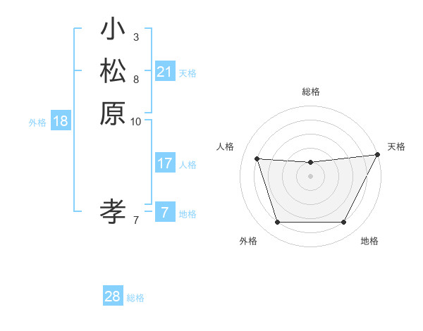 小松原 孝さんの天格は21画の5点!
