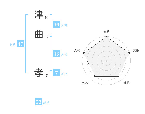 津曲 孝さんの総格は23画の5点!