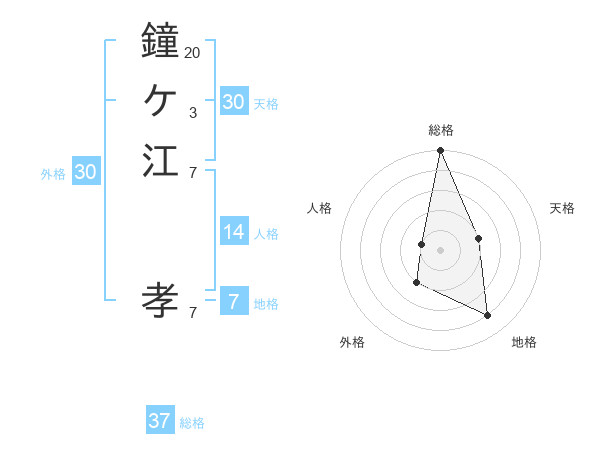 鐘ケ江 孝さんの総格は37画の5点!