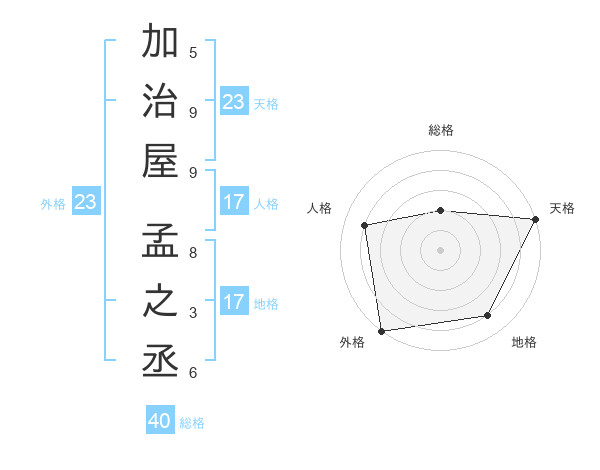 加治屋 孟之丞さんの天格は23画の5点