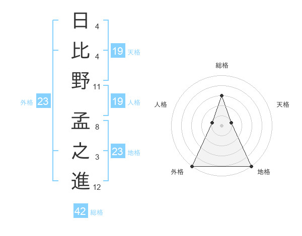 日比野 孟之進さんを姓名の画数から五運を鑑定