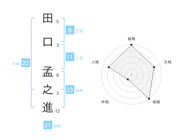 田口 孟之進さんを姓名の画数から五運を鑑定