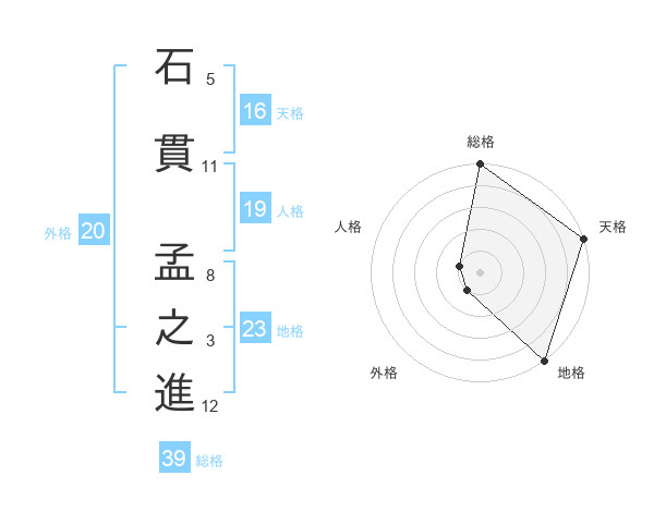 石貫 孟之進さんを姓名の画数から五運を鑑定