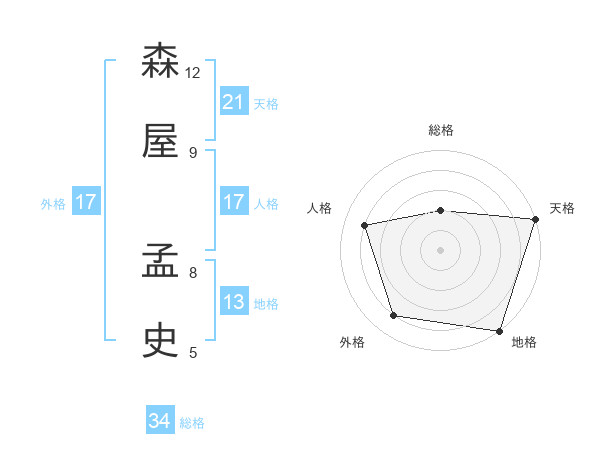森屋 孟史さんを姓名の画数から五運を鑑定