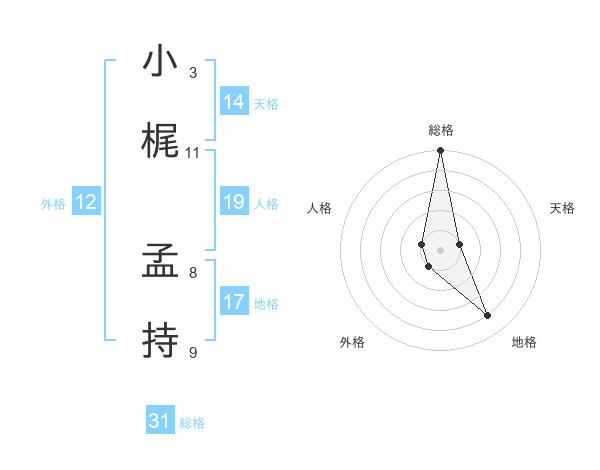 小梶 孟持さんを姓名の画数から五運を鑑定