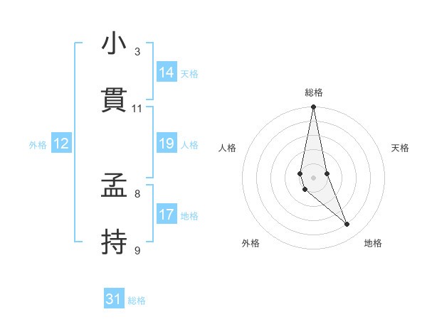 小貫 孟持さんを姓名の画数から五運を鑑定