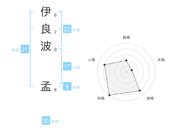 伊良波 孟さんの外格は21画の5点!
