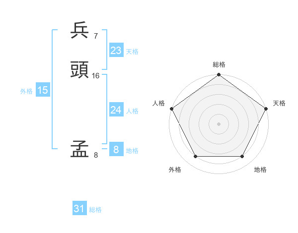 兵頭 孟さんの天格は23画の5点!