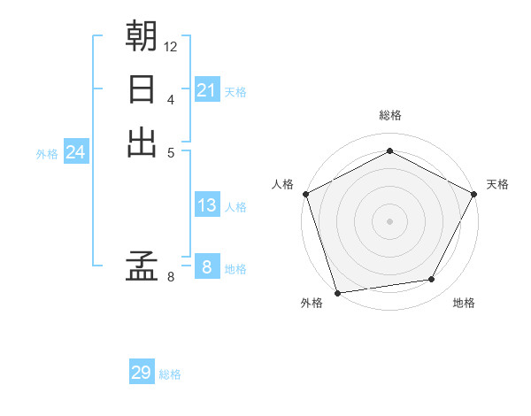 朝日出 孟さんを姓名の画数から五運を鑑定