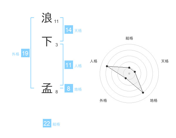 浪下 孟さんの総格は22画の1点!