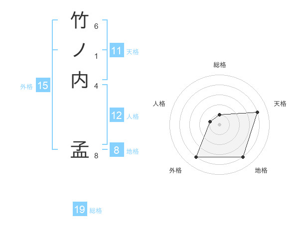 竹ノ内 孟さんを姓名の画数から五運を鑑定