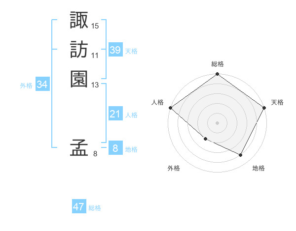 諏訪園 孟さんを姓名の画数から五運を鑑定