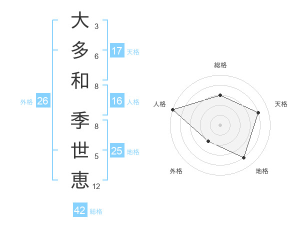 大多和 季世恵さんを姓名の画数から五運を鑑定