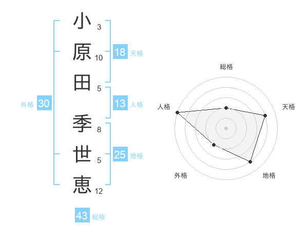 小原田 季世恵さんを姓名の画数から五運を鑑定