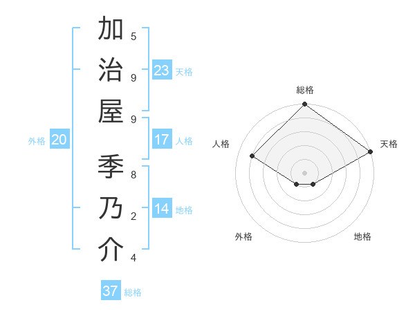 加治屋 季乃介さんを姓名の画数から五運を鑑定