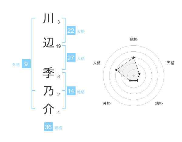 川辺 季乃介さんの天格は22画の1点!