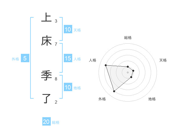 上床 季了さんの総格は20画の1点!