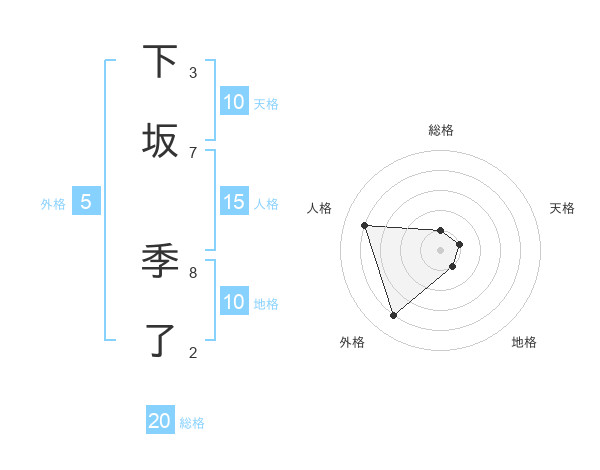 家系が持つ宿命的な運勢を表します。祖先から受け継いだ苗字ですので自分の力が及びません。家柄を象徴します。