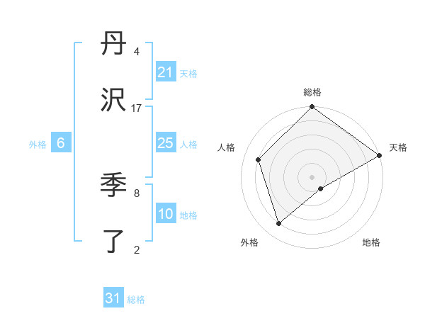 丹沢 季了さんを姓名の画数から五運を鑑定