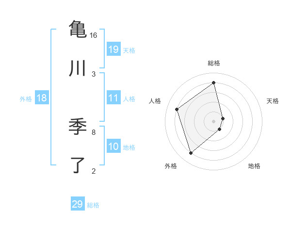 家系が持つ宿命的な運勢を表します。祖先から受け継いだ苗字ですので自分の力が及びません。家柄を象徴します。