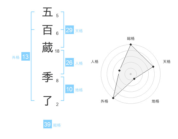 五百蔵 季了さんの総格は39画の5点!