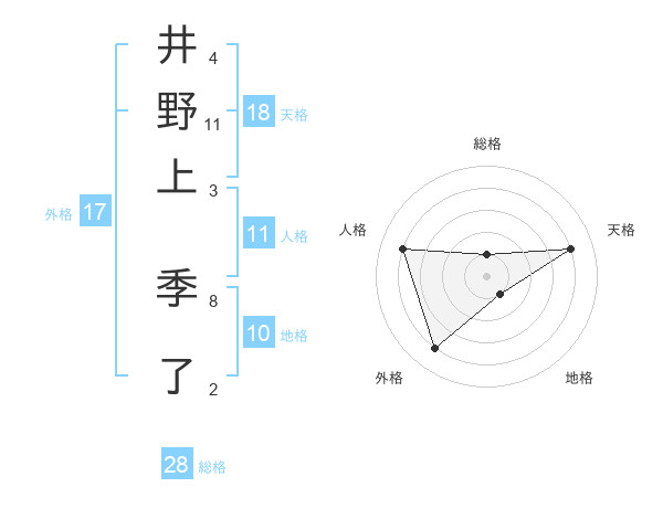 占い結果は姓名判断である以上、良い場合も悪い場合もありますが、決してお名前を誹謗中傷するものでなく、画数の自動計算によって得られたものです。また、本サイトの検索によって得られた鑑定結果で、第三者を誹謗中傷したり名誉を棄損するような行為を禁じます。