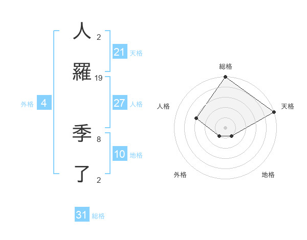 家系が持つ宿命的な運勢を表します。祖先から受け継いだ苗字ですので自分の力が及びません。家柄を象徴します。