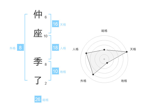 仲座 季了さんの総格は26画の2点!