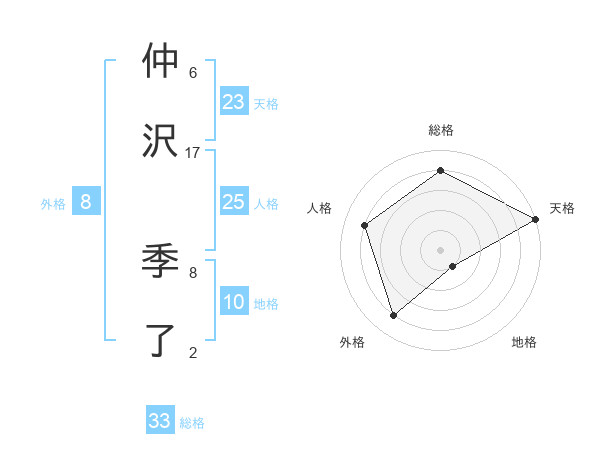 仲沢 季了さんの総格は33画の4点!