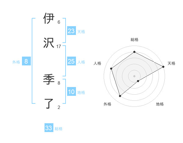 伊沢 季了さんの総格は33画の4点!