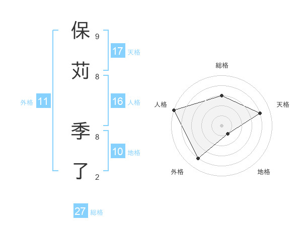 保苅 季了さんの総格は27画の3点!