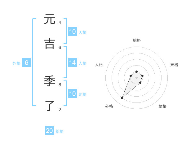 元吉 季了さんの総格は20画の1点!