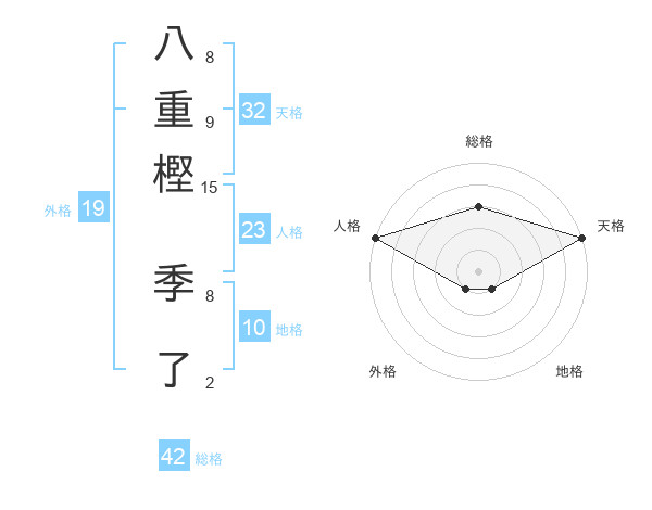 八重樫 季了さんを姓名の画数から五運を鑑定