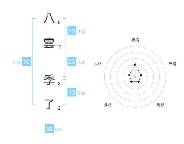 八雲 季了さんの総格は30画の2点!
