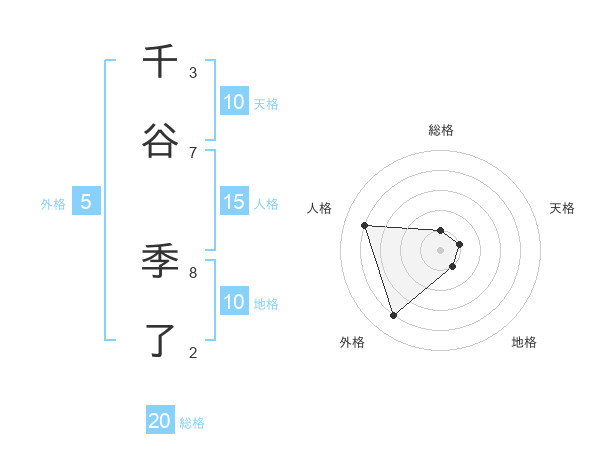 千谷 季了さんの総格は20画の1点!