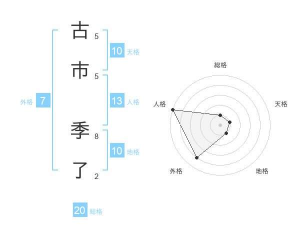 古市 季了さんの総格は20画の1点!