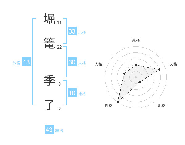 堀篭 季了さんの総格は43画の2点!