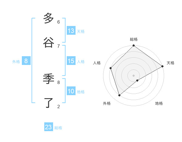 多谷 季了さんの総格は23画の5点!