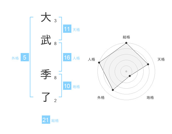 大武 季了さんの総格は21画の5点!
