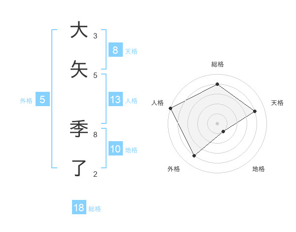 大矢 季了さんの天格は8画の4点!