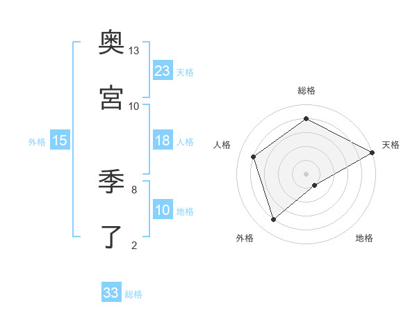 奥宮 季了さんの天格は23画の5点!
