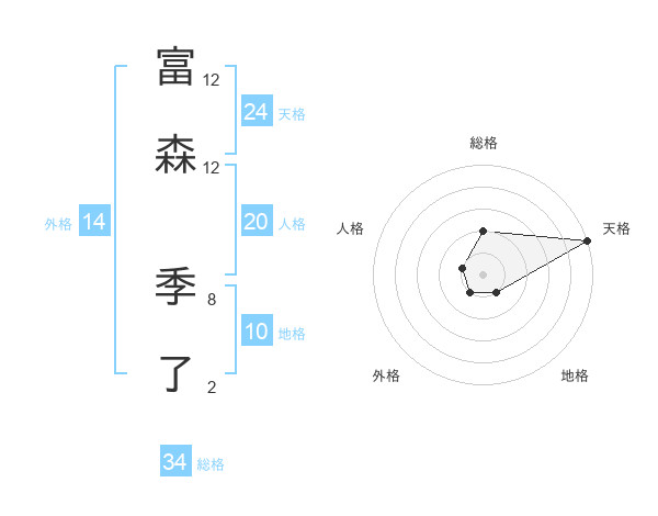 富森 季了さんの天格は24画の5点!