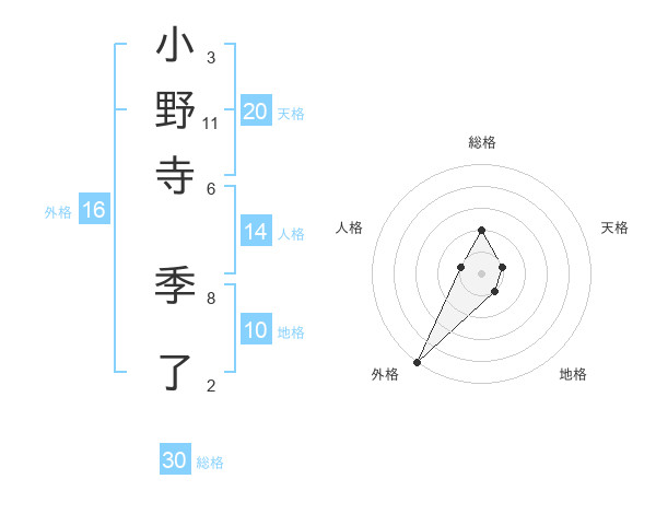 小野寺 季了さんを姓名の画数から五運を鑑定