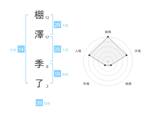棚澤 季了さんを姓名の画数から五運を鑑定