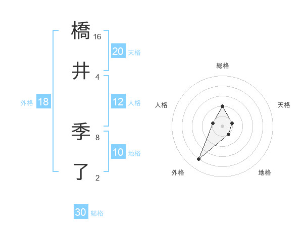 橋井 季了さんの総格は30画の2点!