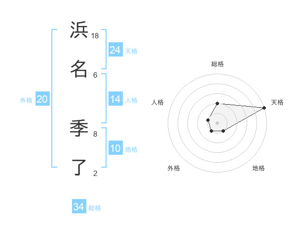 浜名 季了さんの天格は24画の5点!