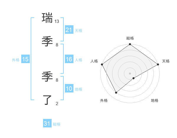 瑞季 季了さんの総格は31画の5点!
